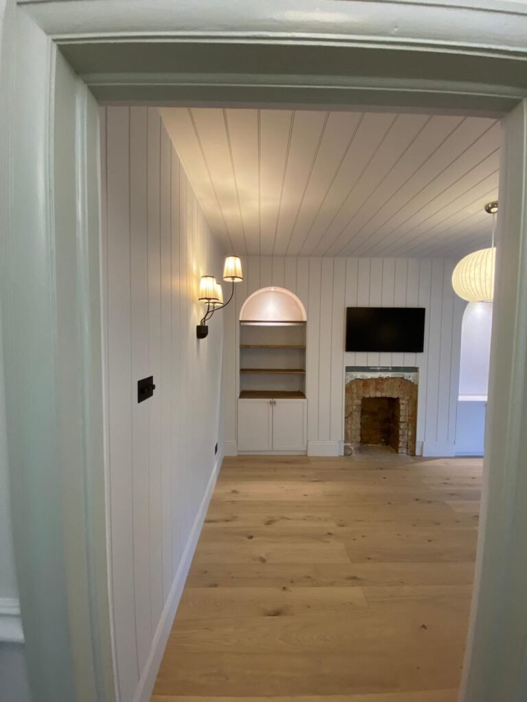 The project included the installation of underfloor heating, full flooring replacement, bespoke built-in joinery, custom cabinetry, and a complete reconfiguration of internal spaces. Original elements such as staircases and architectural details were restored and refinished to preserve the character of the property, while new lighting and finishes were introduced to enhance comfort and functionality.